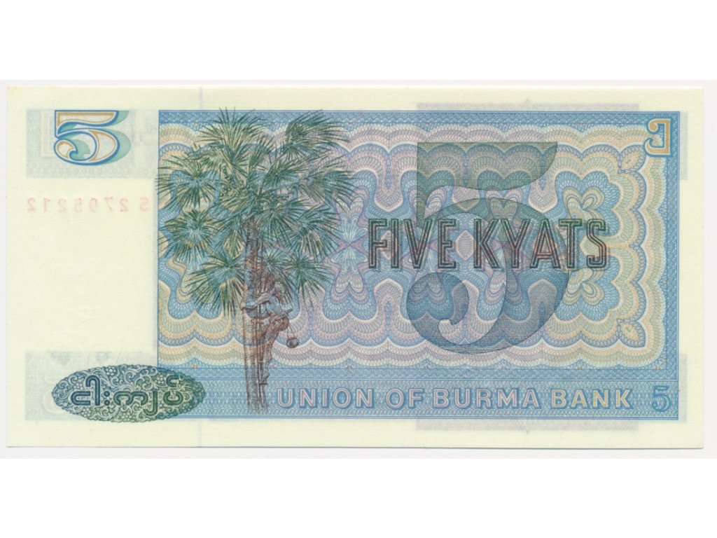 Barma, 5 Kyats, 1973, stav UNC...viz autentické foto