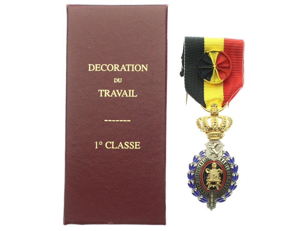 Belgie, AE dekorace Medaile za zdatnost, morálku a dobré chování, 1.třída, stuha, stužka, etue, luxusní stav 0/0/0