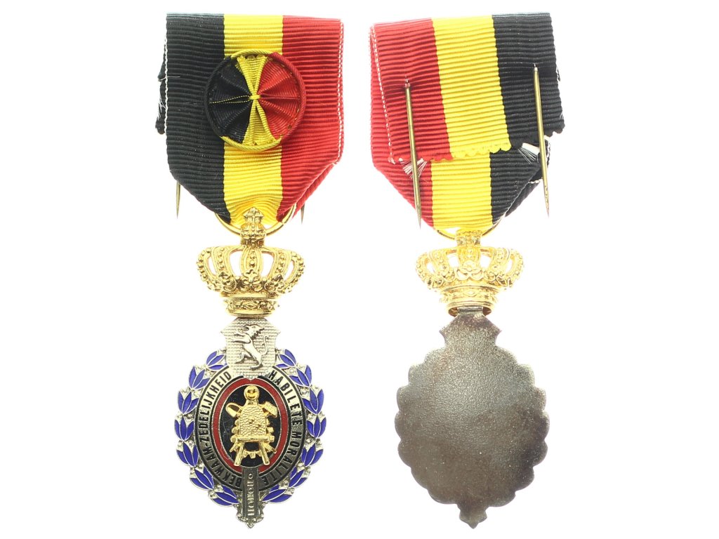 Belgie, AE dekorace Medaile za zdatnost, morálku a dobré chování (Medaille voor ZEDELIJKHEID, HABILETEIT EN GOED GEDRAG), 1.třída, stuha, stužka, etue, luxusní stav 0/0/0...viz autentické foto