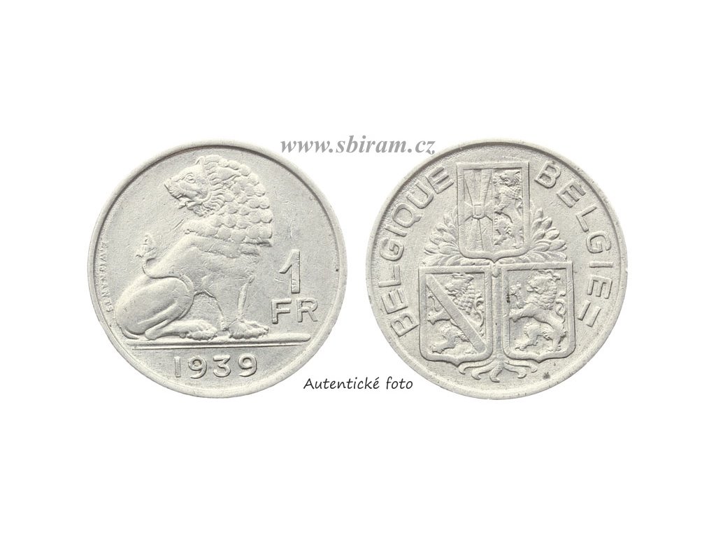Belgie, mince 1 Frank, 1939...viz autentické foto