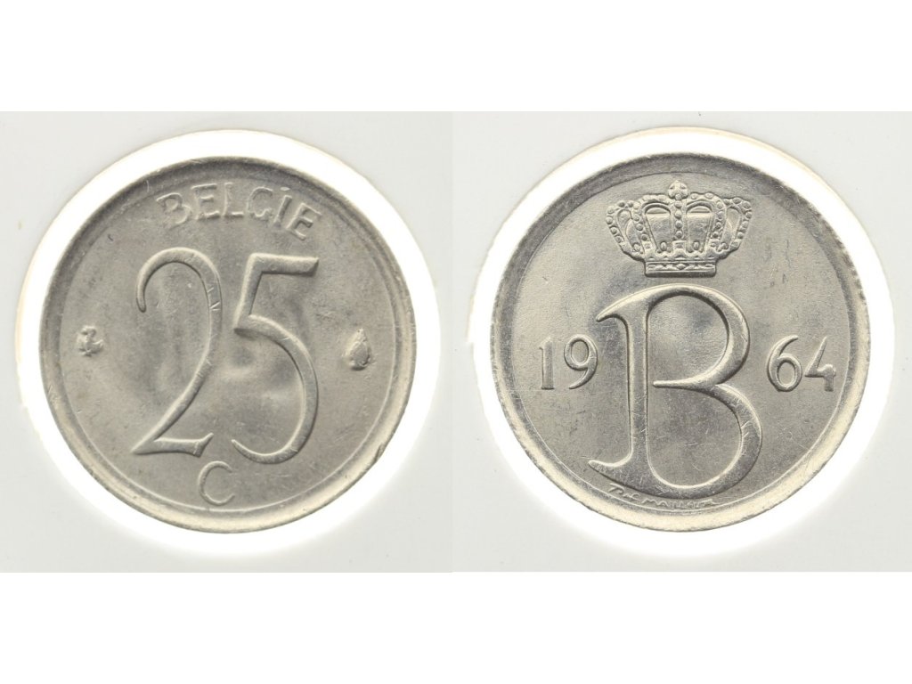 Belgie, mince 25 Centimes, 1964, stav 1/1...viz autentické foto