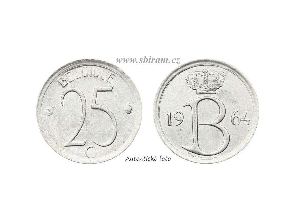 Belgie, mince 25 Centimes, 1964...viz autentické foto