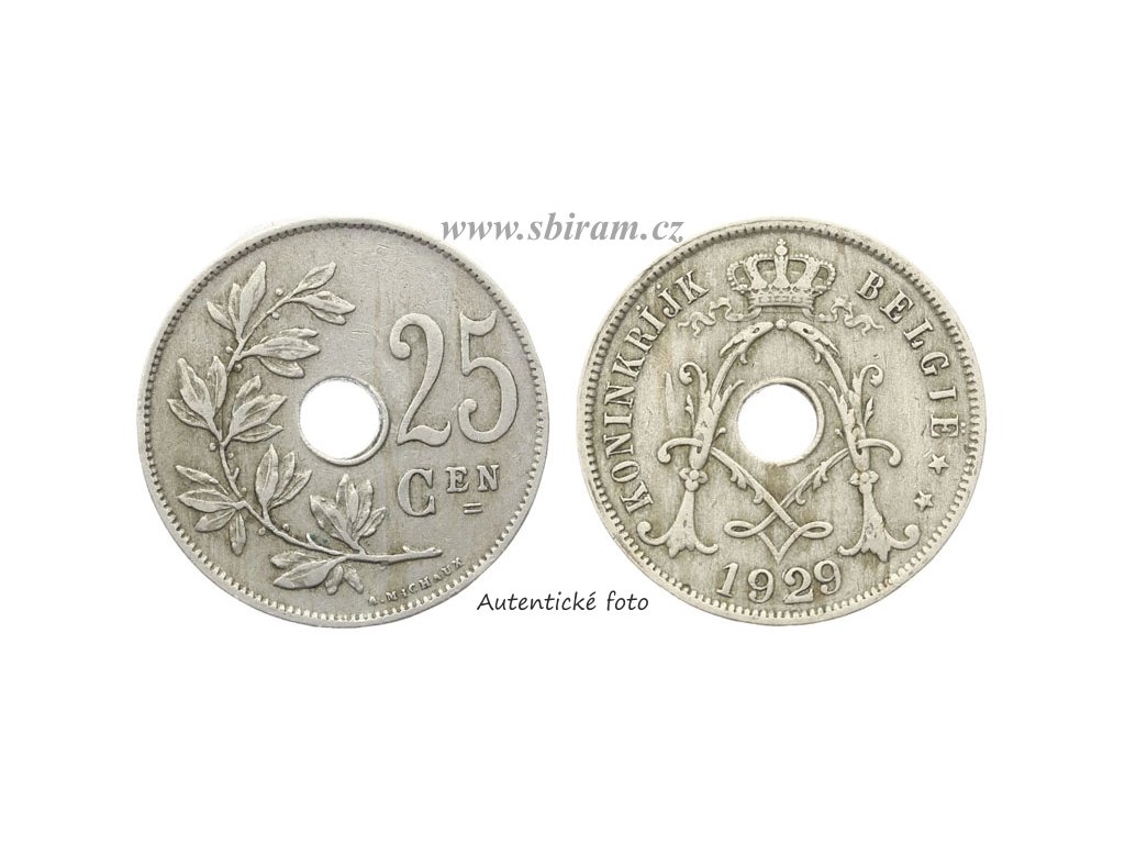 Belgie, mince 25 Centimů, 1929...viz autentické foto