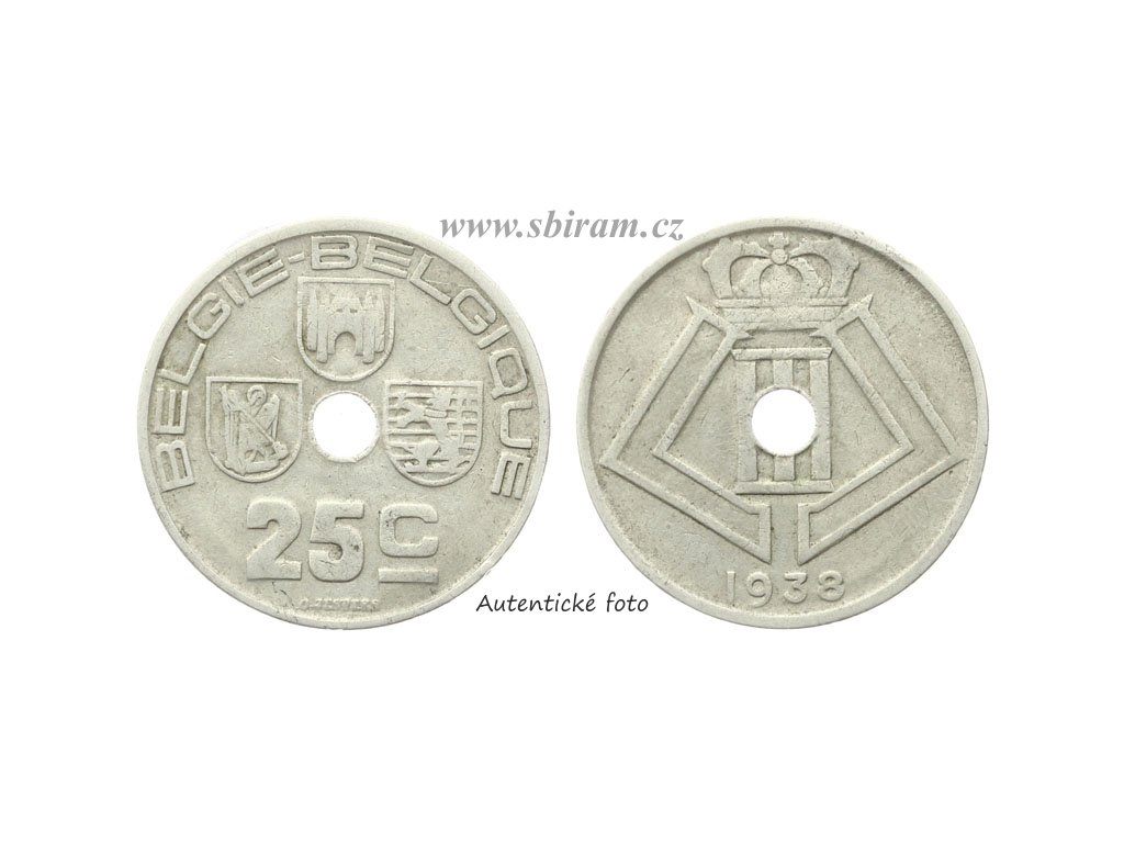 Belgie, mince 25 Centimů, 1938...viz autentické foto