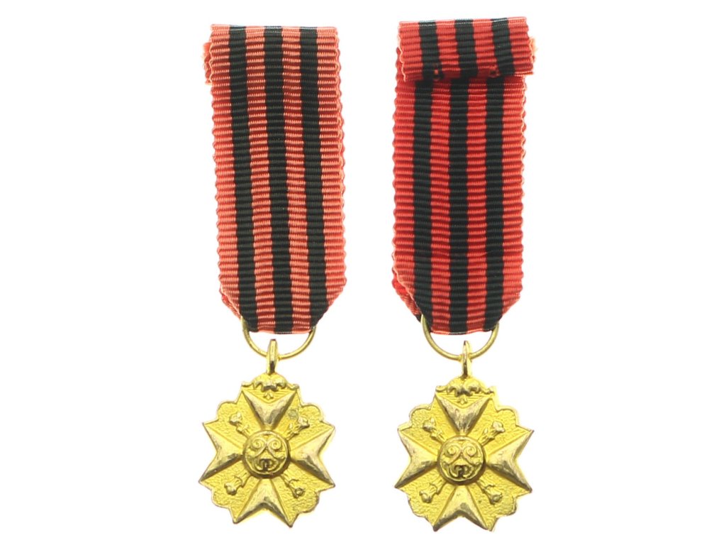 Belgie, miniatura AE medaile za službu ve státní správě, zlatý stupeň, stuha, stav 1/1/1
