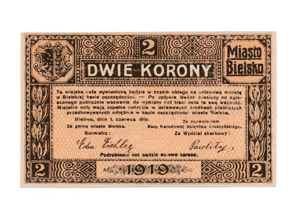 Bílsko (Bielitz), 2 Koruna, 1919, série 4716, stav UNC