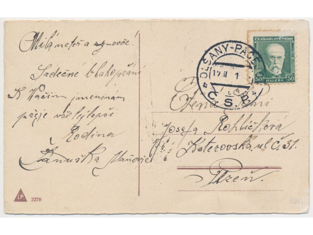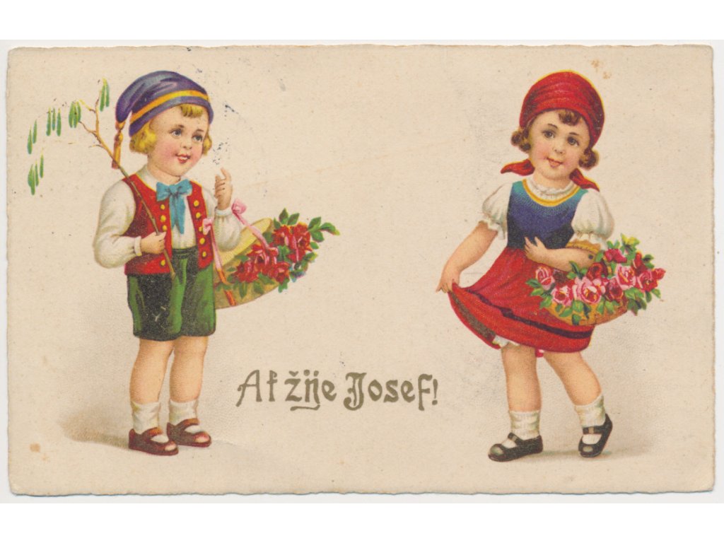 Blahopřejná pohlednice, "Ať žije Josef!", cca 1931