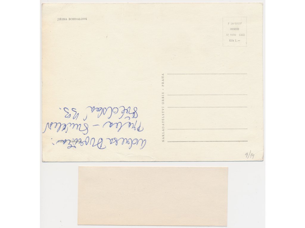 Bohdalová Jiřina (1931), česká herečka, pohlednice s vl. podpisem a kartička s vl. podpisem