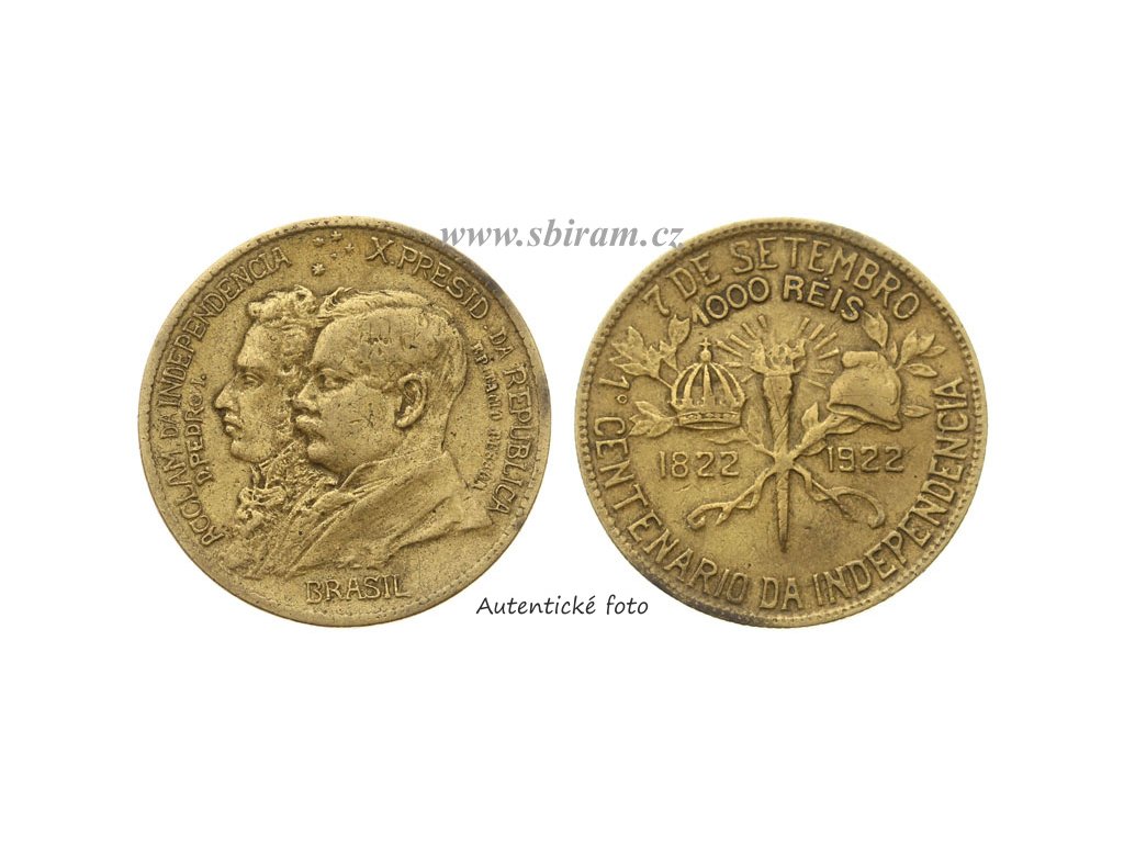 Brazílie, pamětní mince 1000 Réis, 1922, 100. výročí nezávislosti Brazílie, stav...viz autentické foto