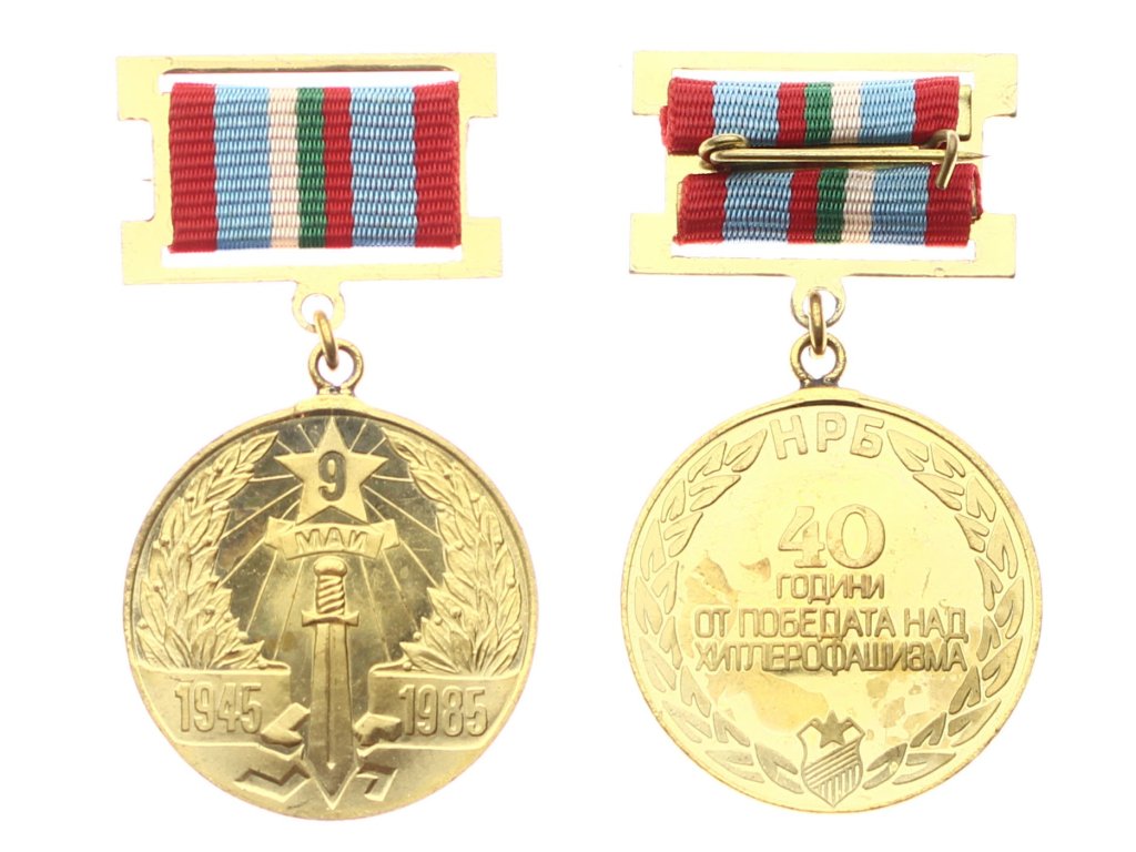 Bulharsko, AE pamětní medaile 40.výročí vítězství, stuha, zlacený bronz, stav 1/1/1...viz autentické foto