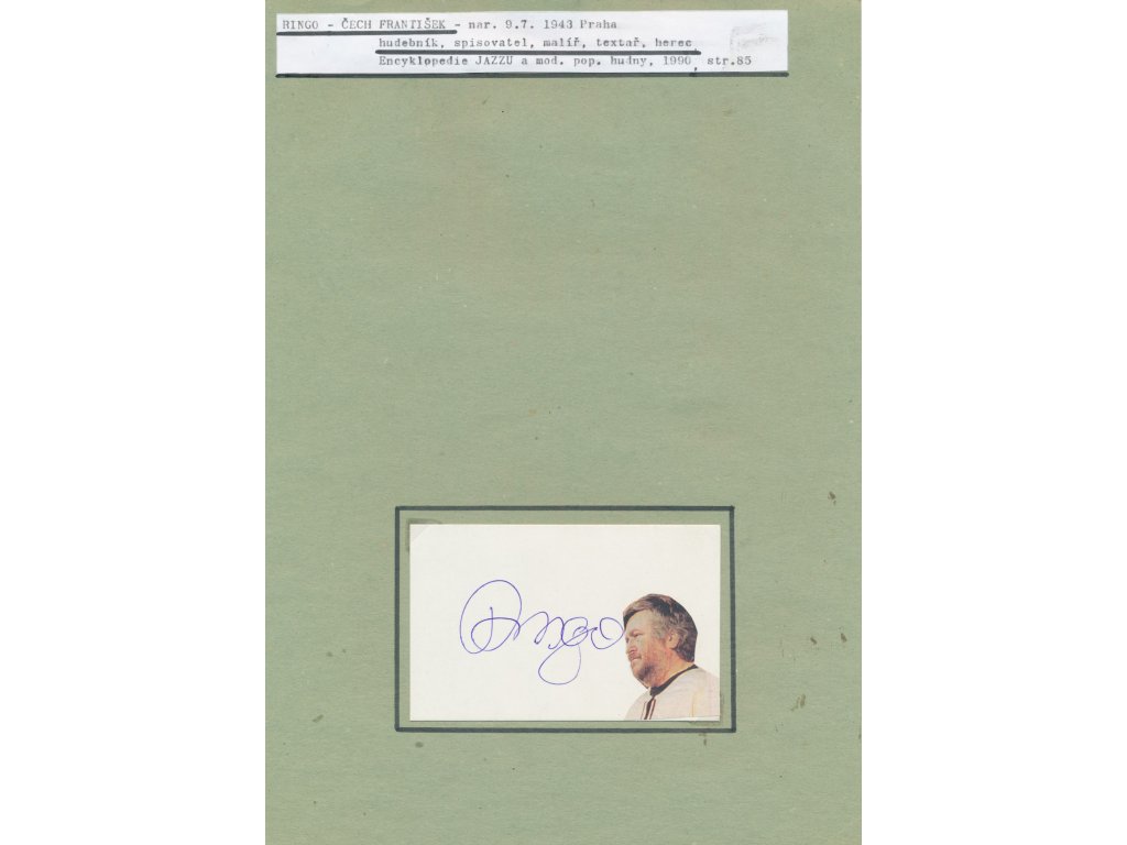 Čech František Ringo (1943), spisovatel, zpěvák, sběratelský list s vl. podpisem