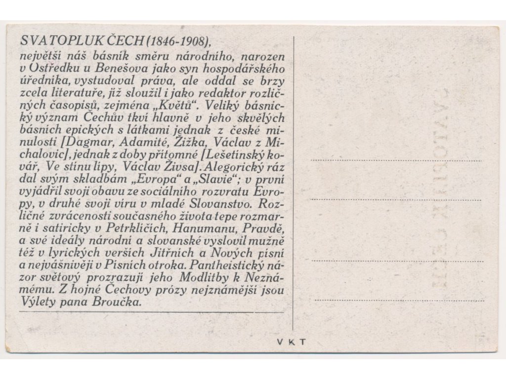 Čech Svatopluk (1846-1908), básník, Portrétová pohlednice, cca 1935