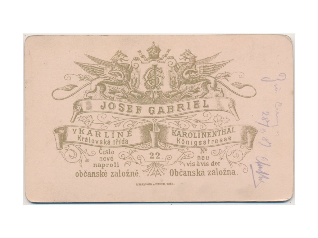 Čechy, ateliérové foto pána v klobouku, 1889, ateliér Gabriel, rozměr cca 11x7cm
