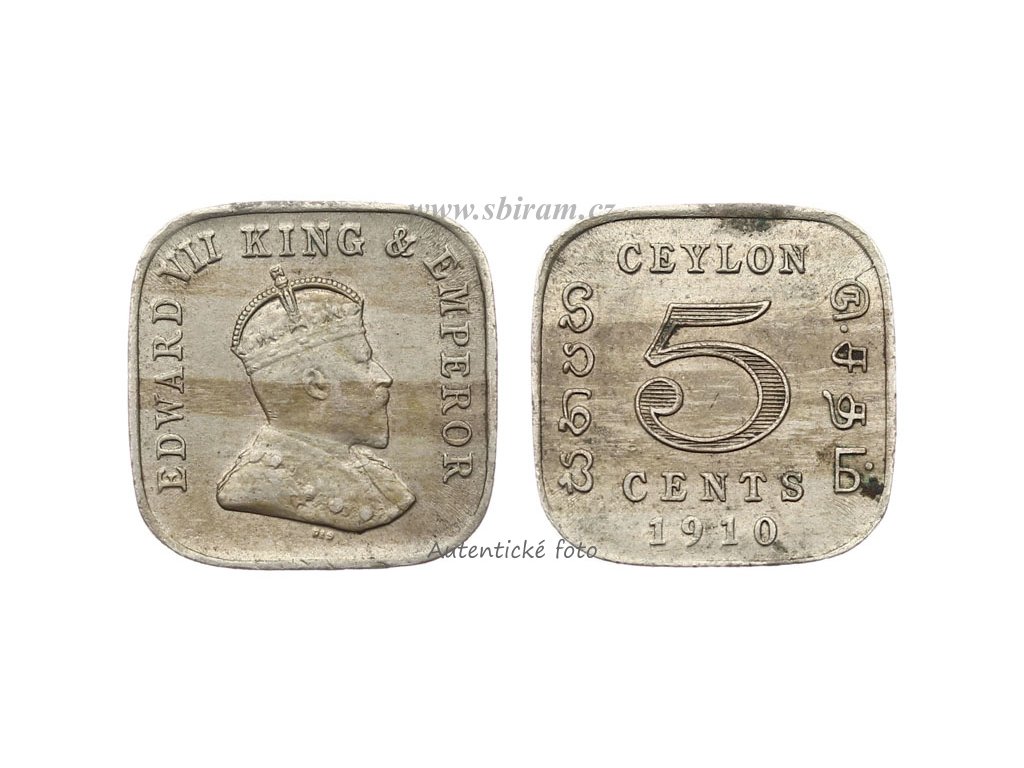 Cejlon, mince 5 Cent, 1910...viz autentické foto