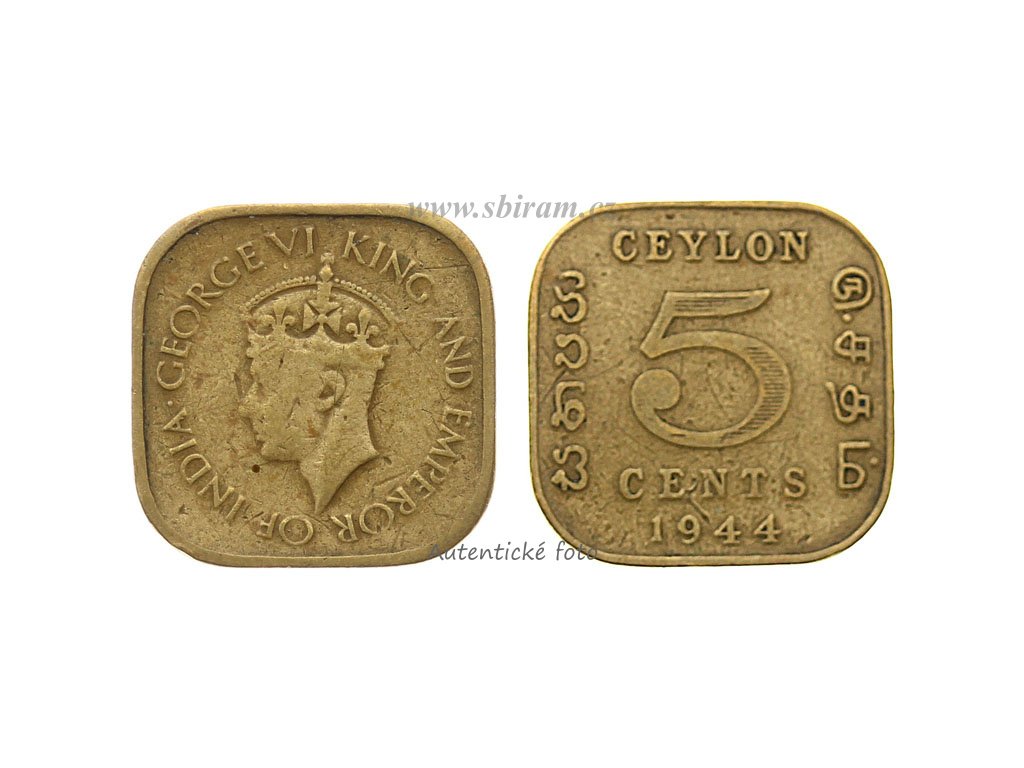 Cejlon, mince 5 Cent, 1944...viz autentické foto