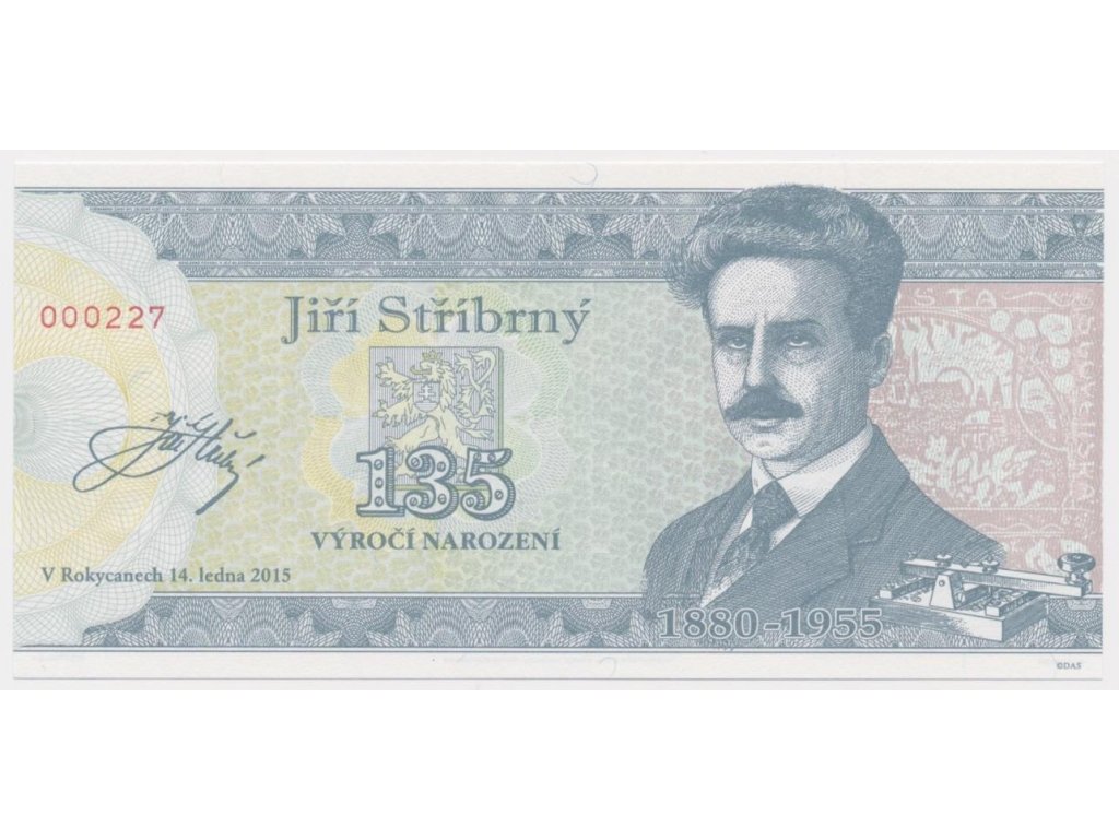 Česká republika, J. Stříbrný, 135. výročí narození , 2015, pamětní poukázka, stav UNC