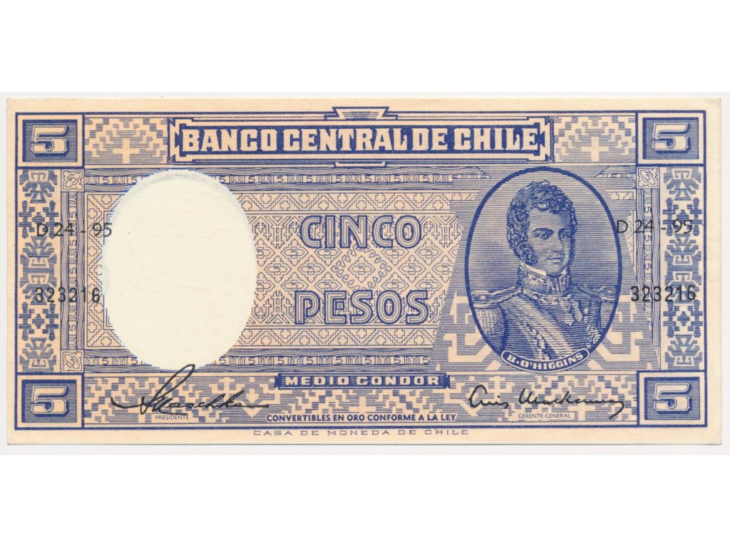 Chile, 5 Pesos, bez data (1958), stav 0