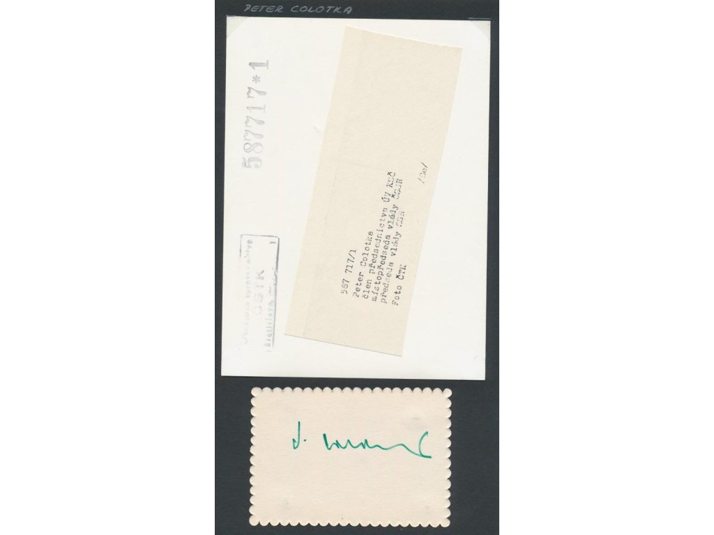 Colotka Peter (1925-2019), slovenský politik, předseda vlády, sběratelská karta o rozměru cca 27x14,4 cm s oficiální fotografií ČTK + kartička s vlastnoručním podpisem