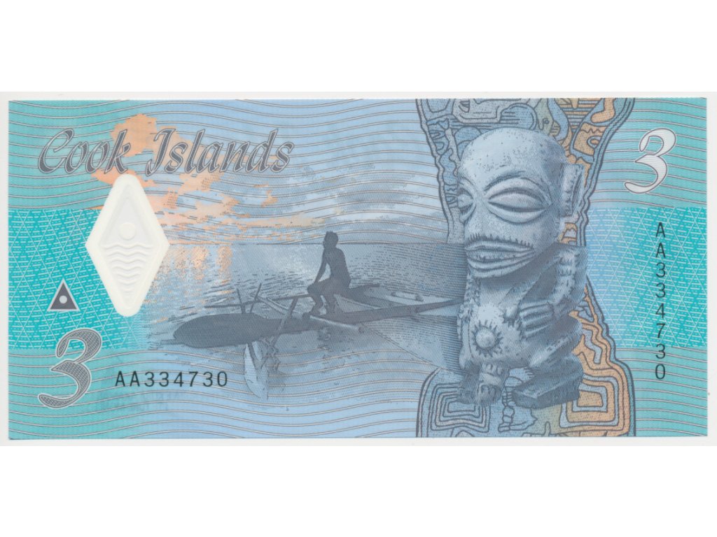 Cookovy ostrovy, 3 Dollars, 2021, polymerová bankovka, stav UNC