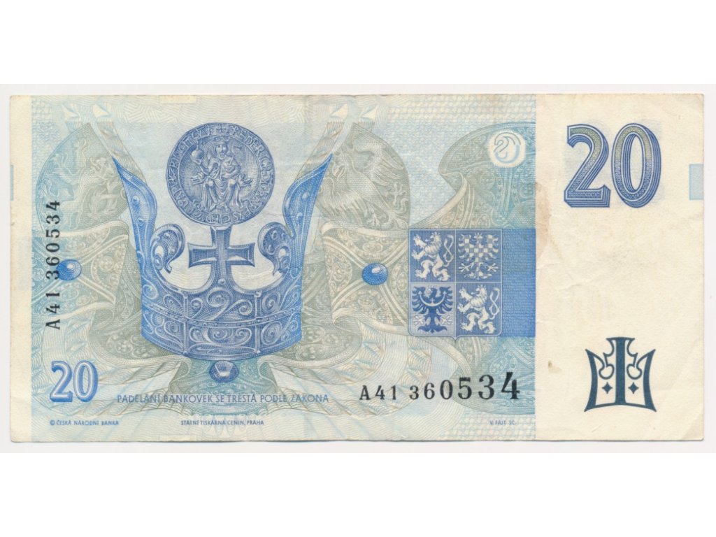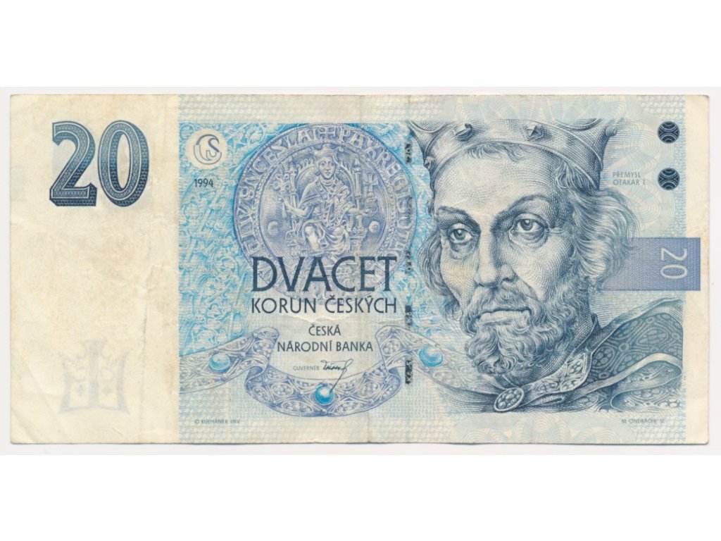 ČR, 20 Kč, 1994, série A, neperforovaná, oběhový stav