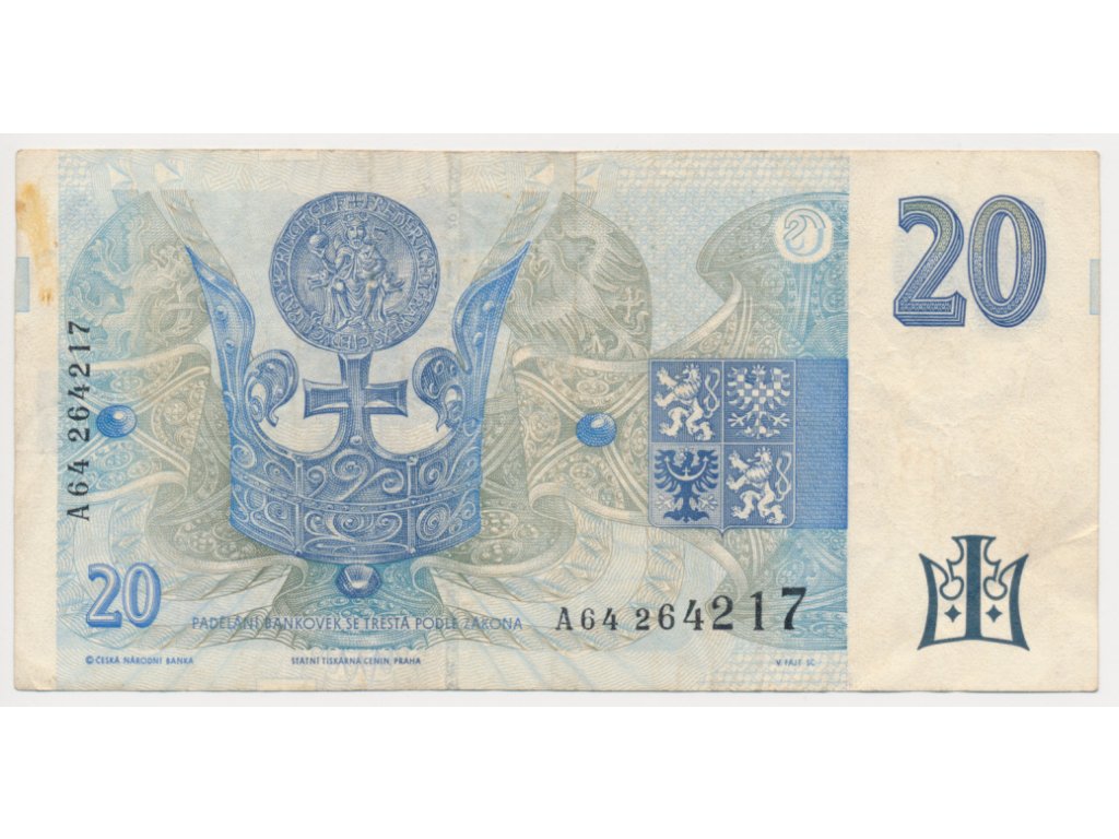 ČR, 20 Kč, 1994, série A, neperforovaná, oběhový stav