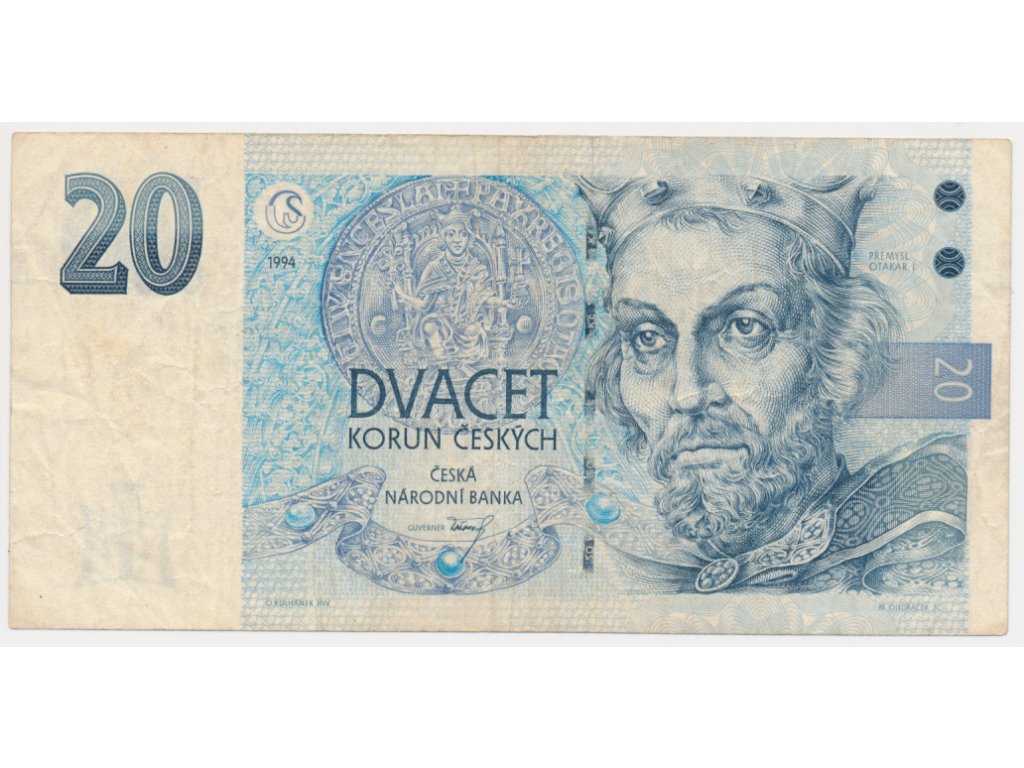 ČR, 20 Kč, 1994, série B, neperforovaná, oběhový stav