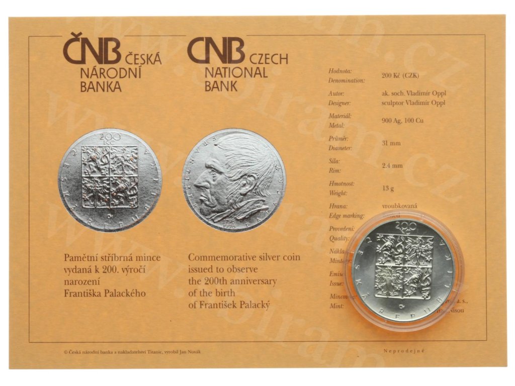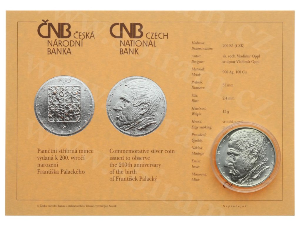 ČR, 200 Kč, František Palacký, 1998, Ag 0,900, váha 13 gramů, kapsle