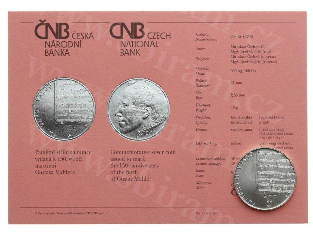 ČR, 200 Kč, Gustav Mahler, 2010, Ag 0,900, váha 13 gramů, kapsle