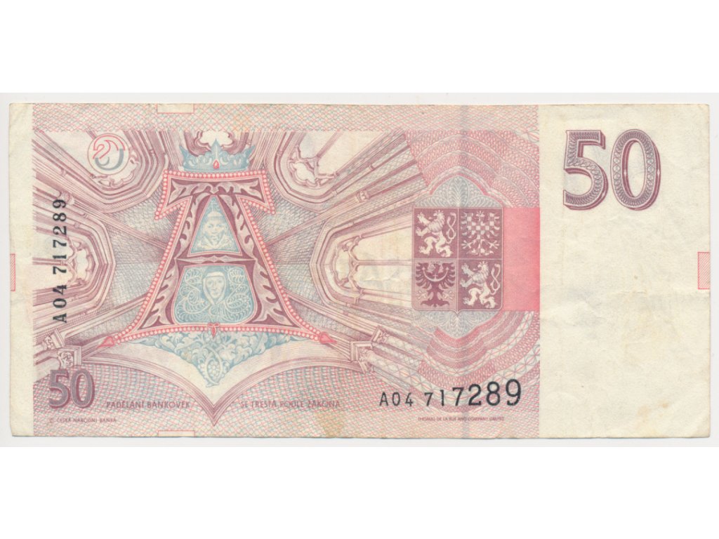 ČR, 50 Kč, 1993, série A, neperforovaná, oběhový stav