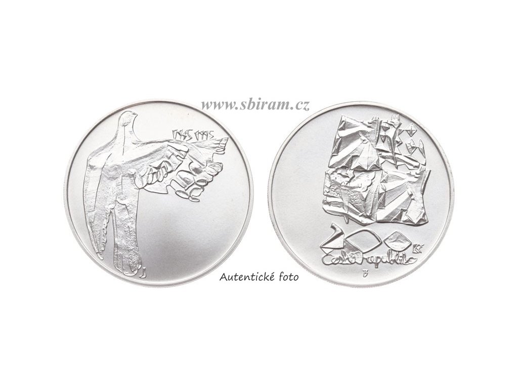 ČR, Ag (stříbrná) mince 200 Koruna 1995 - 50. výročí vítězství nad fašismem, stav 0/0...viz autentické foto