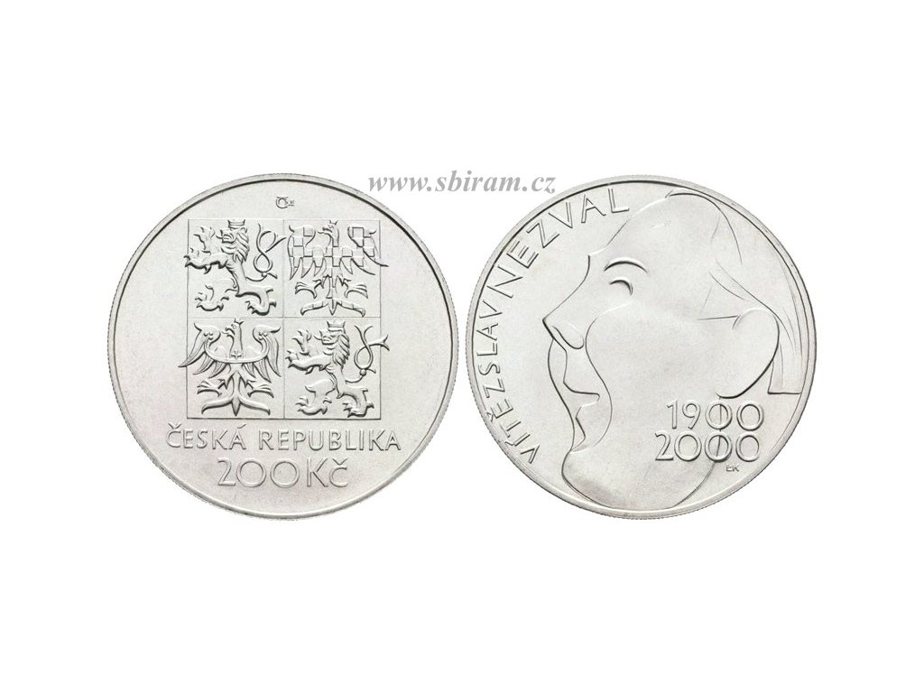 ČR, Ag (stříbrná) mince 200 Koruna 2000 - 100. výročí narození Vítězslava Nezvala, jemná patina, ražební lesk, stav 0/0...viz foto