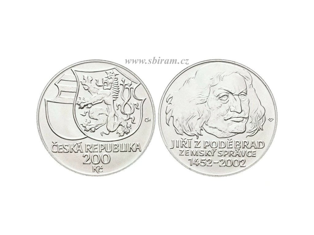 ČR, Ag (stříbrná) mince 200 Koruna 2002 - 550. výročí ustanovení Jiřího z Poděbrad zemským správcem, ražební lesk, stav 0/0...viz foto