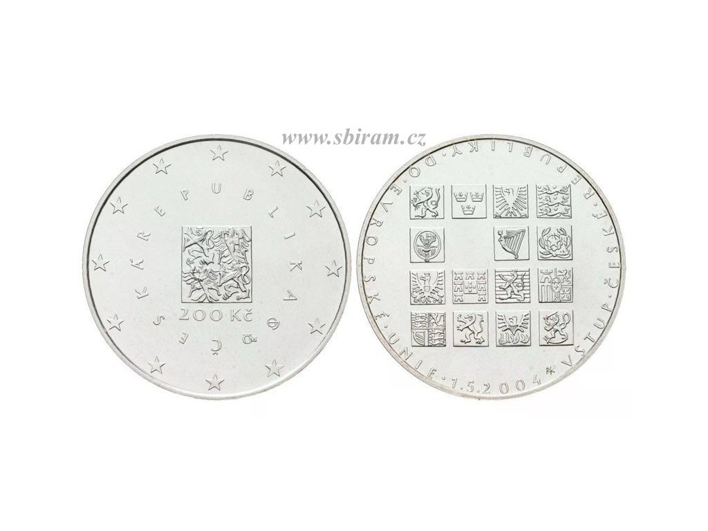 ČR, Ag (stříbrná) mince 200 Koruna 2004 - Vstup České republiky do Evropské unie, jemná patina, ražební lesk, stav 0/0...viz foto