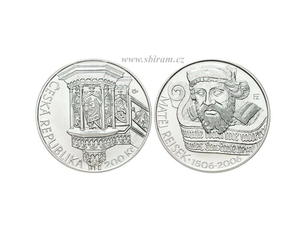 ČR, Ag (stříbrná) mince 200 Koruna 2006 - 500. výročí úmrtí Matěje Rejska, ražební lesk, stav 0/0...viz foto