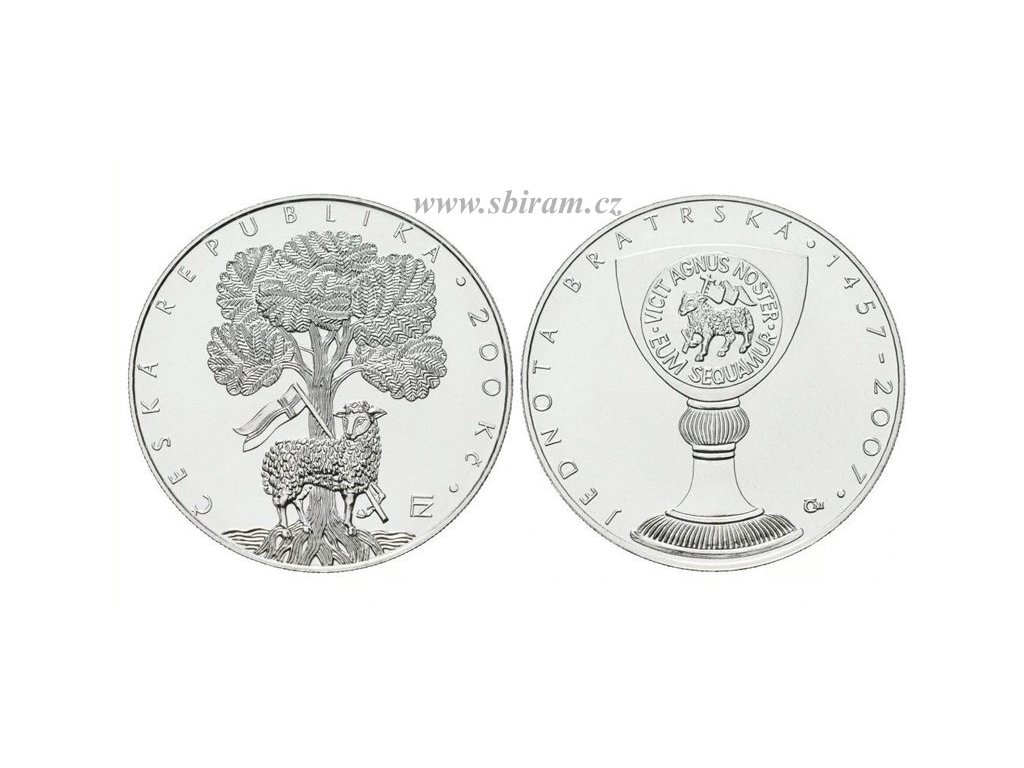ČR, Ag (stříbrná) mince 200 Koruna 2007 - 550. výročí založení Jednoty bratrské, ražební lesk, stav 0/0...viz foto