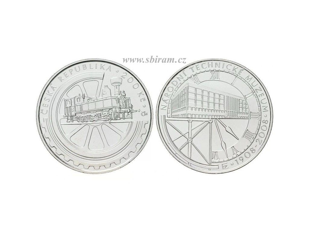 ČR, Ag (stříbrná) mince 200 Koruna 2008 - 100. výročí založení Národního technického muzea, ražební lesk, stav 0/0...viz foto