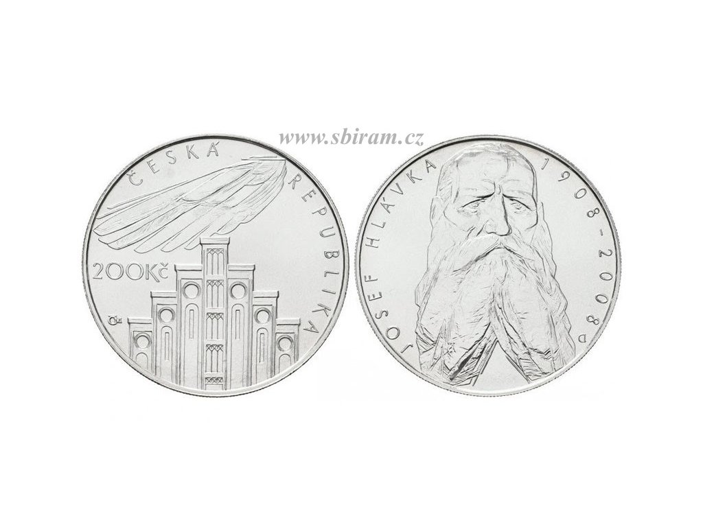 ČR, Ag (stříbrná) mince 200 Koruna 2008 - 100. výročí úmrtí Josefa Hlávky, ražební lesk, stav 0/0...viz foto