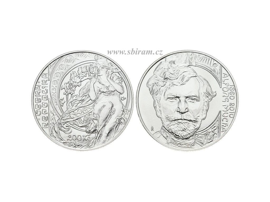 ČR, Ag (stříbrná) mince 200 Koruna 2010 - 150. výročí narození Alfonse Muchy, ražební lesk, kapsle, stav 0/0...viz foto