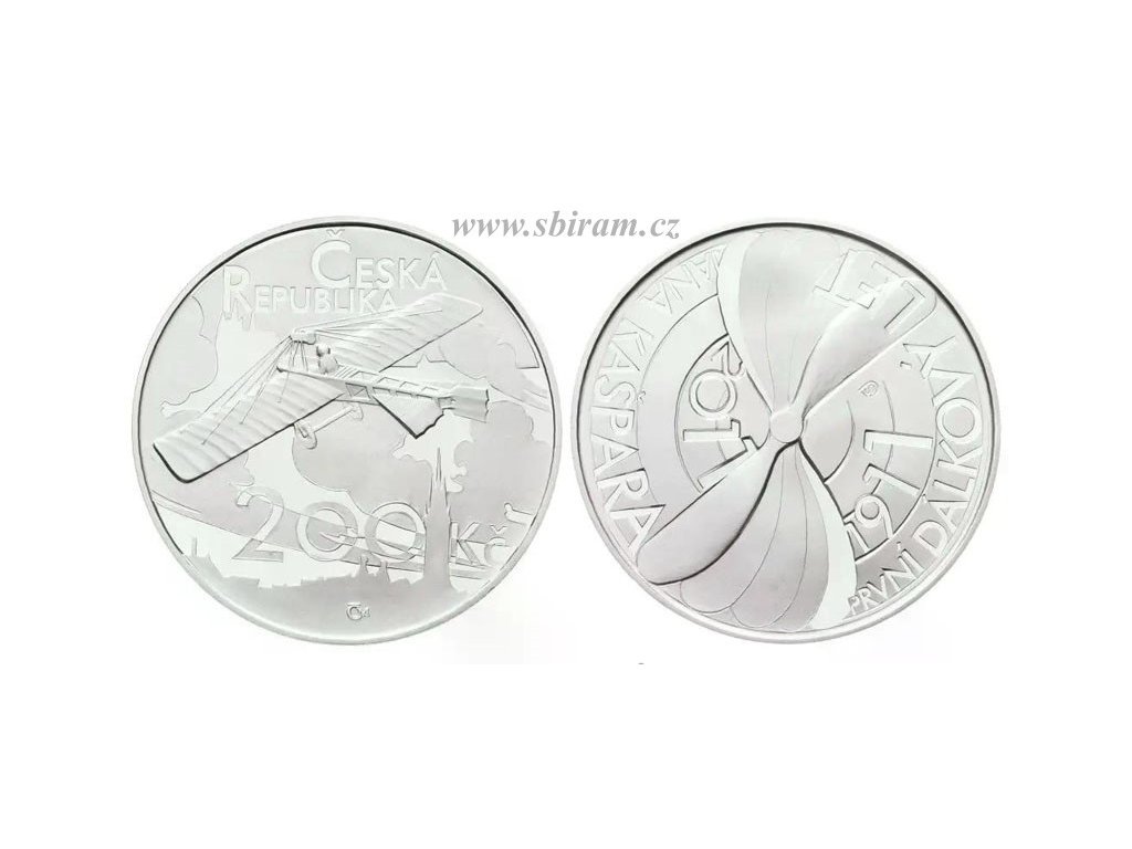 ČR, Ag (stříbrná) mince 200 Koruna 2011 - 100. výročí prvního dálkového letu Jana Kašpara, ražební lesk, kapsle, stav 0/0...viz foto