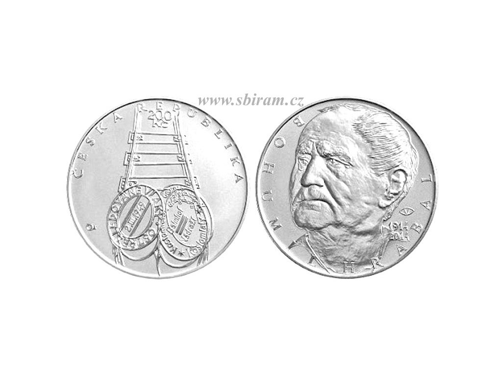 ČR, Ag (stříbrná) mince 200 Koruna 2014 - 100. výročí narození Bohumila Hrabala, ražební lesk, kapsle, stav 0/0...viz foto