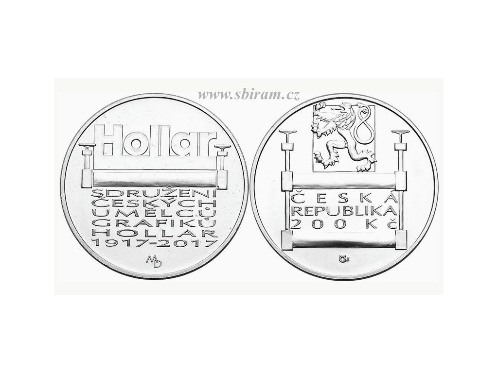 ČR, Ag (stříbrná) mince 200 Koruna 2017 - 100. výročí založení Sdružení českých umělců grafiků Hollar, ražební lesk, kapsle, stav 0/0...viz foto