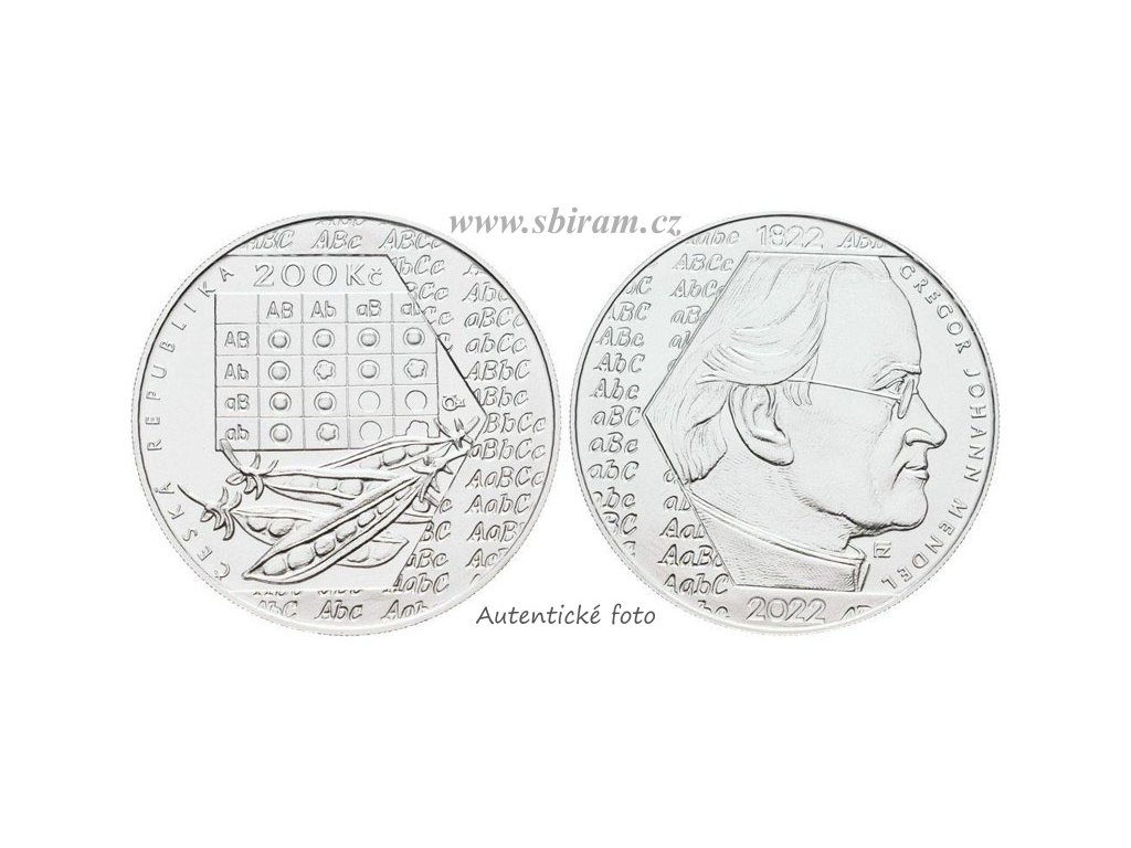 ČR, Ag (stříbrná) mince 200 Koruna 2022 - 200. výročí narození Gregora Johanna Mendela, stav 0/0...viz autentické foto