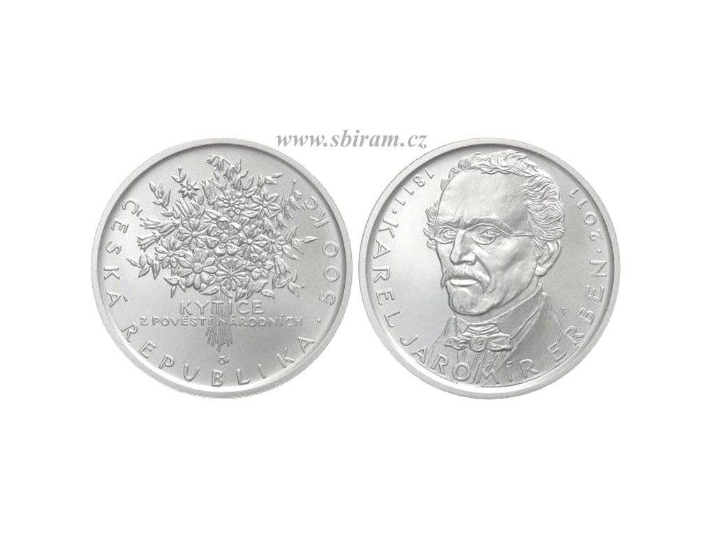 ČR, Ag (stříbrná) mince 500 Koruna 2011 - 200. výročí narození Karla Jaromíra Erbena, ražební lesk, kapsle, stav 0/0...viz foto