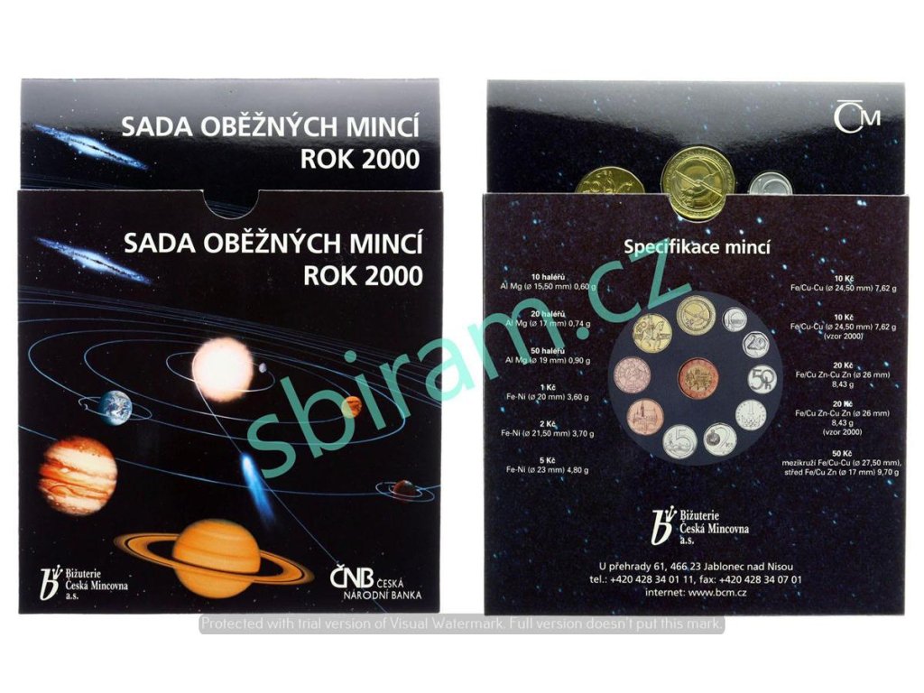 ČR, Sada oběžných mincí, 2000, Sluneční soustava - Vesmír