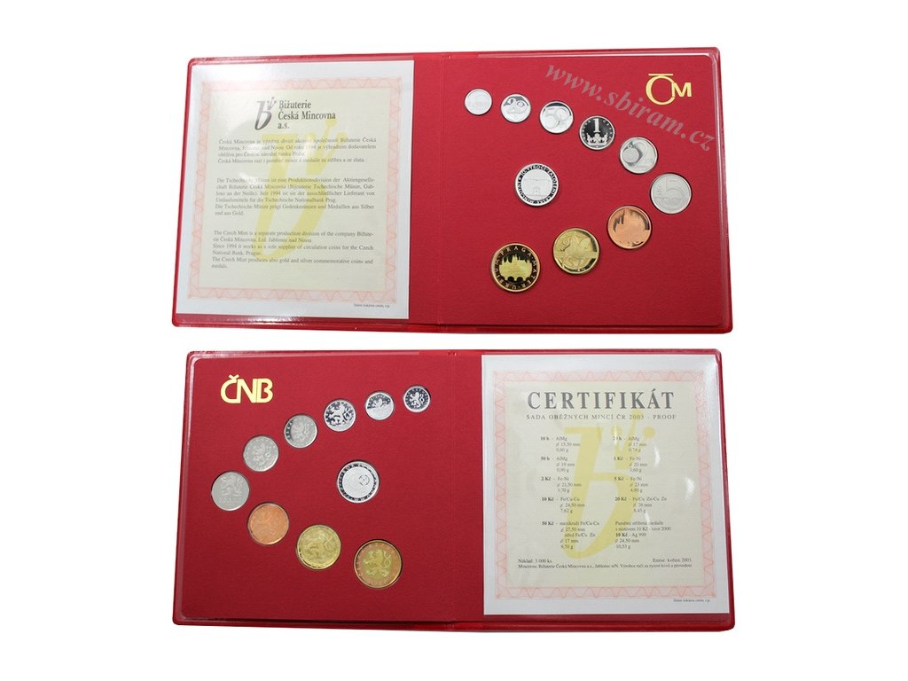 ČR, Sada oběžných mincí, 2003, PROOF, Semišový obal