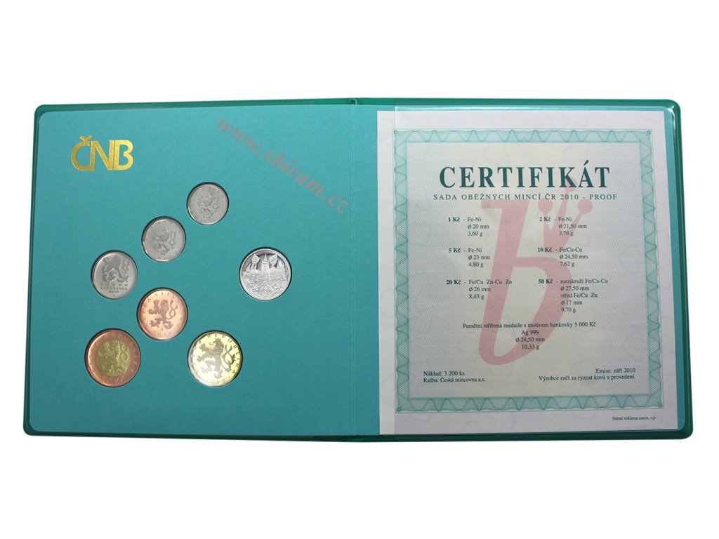 ČR, Sada oběžných mincí, 2010, PROOF, Semišový obal, všechny náležitosti, krásný stav,...viz foto