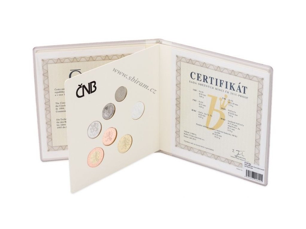 ČR, Sada oběžných mincí, 2015, PROOF, Semišový obal, všechny náležitosti, krásný stav...viz foto