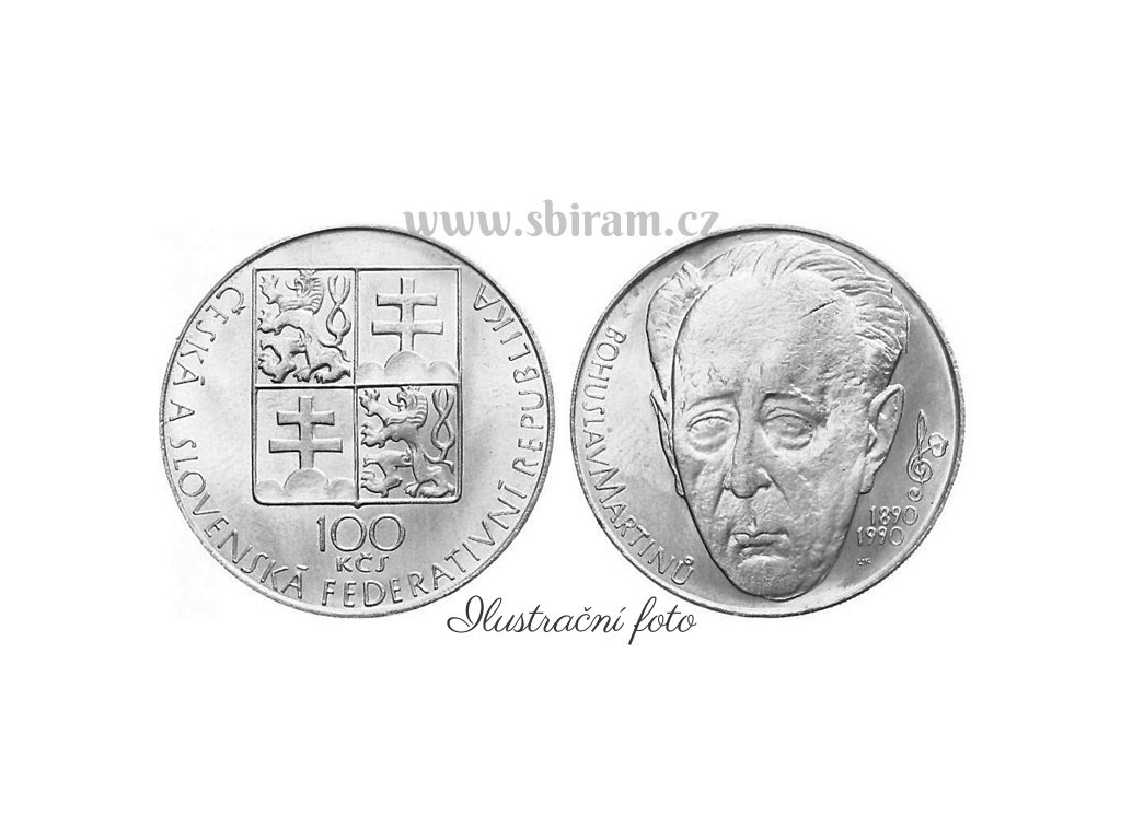 ČSFR, mince 100 Koruna 1990 - 100. výročí narození B. Martinů, stav 0/0