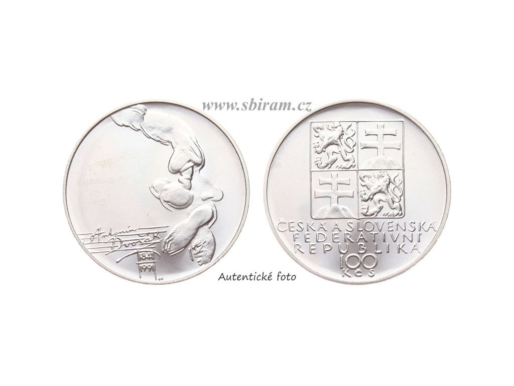 ČSFR, Ag (stříbrná) mince 100 Koruna 1991 - 150. výročí narození Antonína Dvořáka, ražební lesk, jemná patina, kapsle, stav 0/0...viz autentické foto