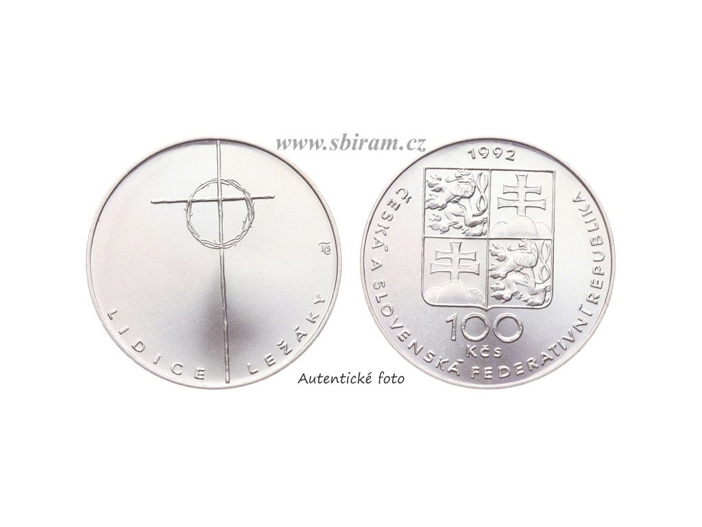 ČSFR, mince 100 Koruna 1992 - 50. výročí vyhlazení Lidic a Ležáků, 0/0